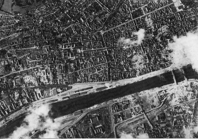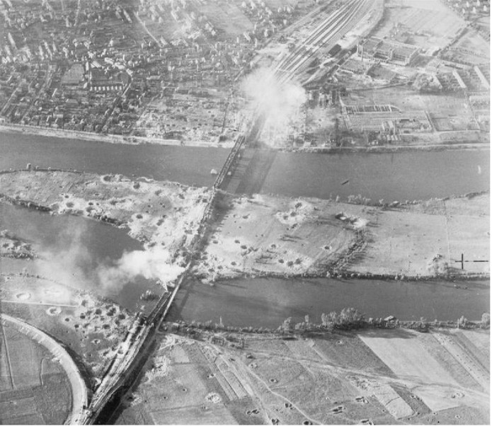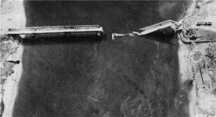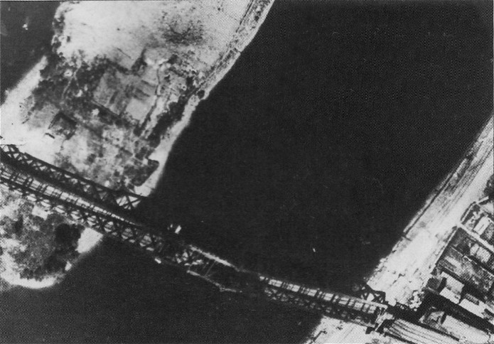 Documents : Photographies aériennes des destructions des ponts enjambant la Seine dans la région de Rouen en Mai 1944.