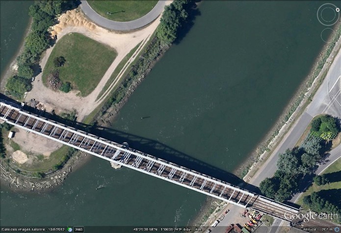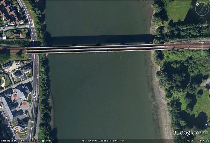 Le 12 juin 1944, Le pont d’Eauplet, cassé en son milieu, a été photographié lors une mission de reconnaissance menée au-dessus de la Seine par des appareils de l’US Air Force.