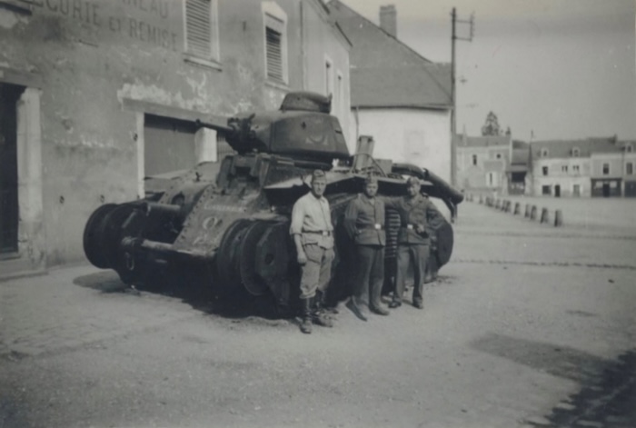 Une fois neutralisé sur la zone de combat, le char a été déplacé par les troupes allemandesà l’aide d’un attelage spécialisé ou d’un engin de dépannage, pratique courante pour dégager les axes et rassembler les matériels capturés. Installée au centre du bourg, l’épave devient alors un objet de propagande et de démonstration matérielle, exposant la vulnérabilité des chars français après leur engagement intensif des 15–20 juin 1940.