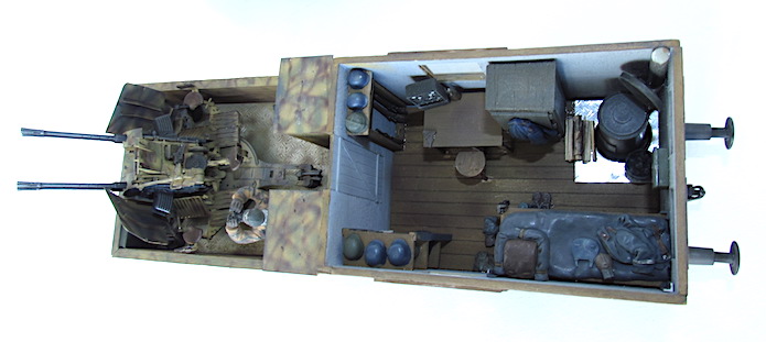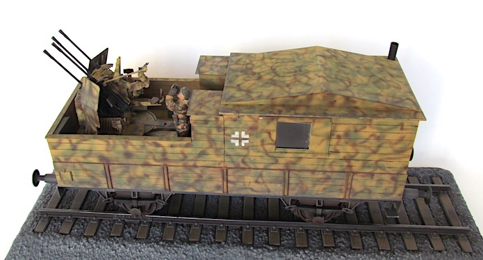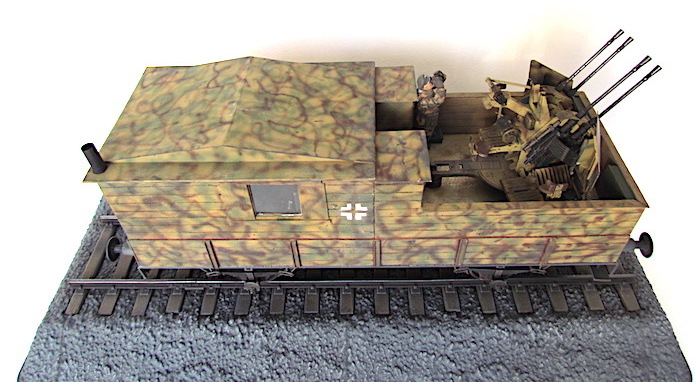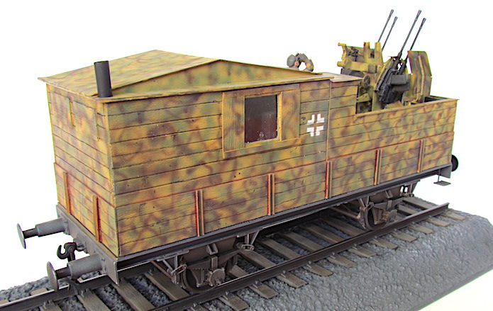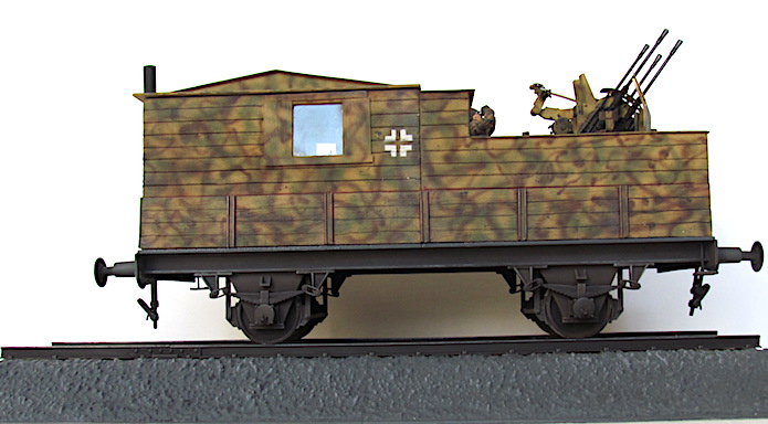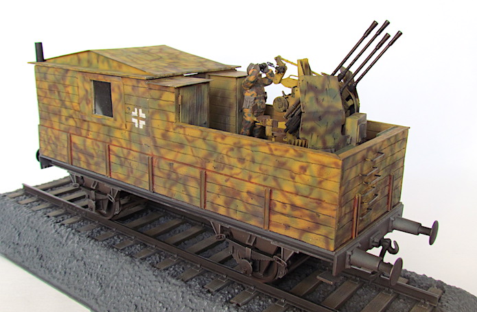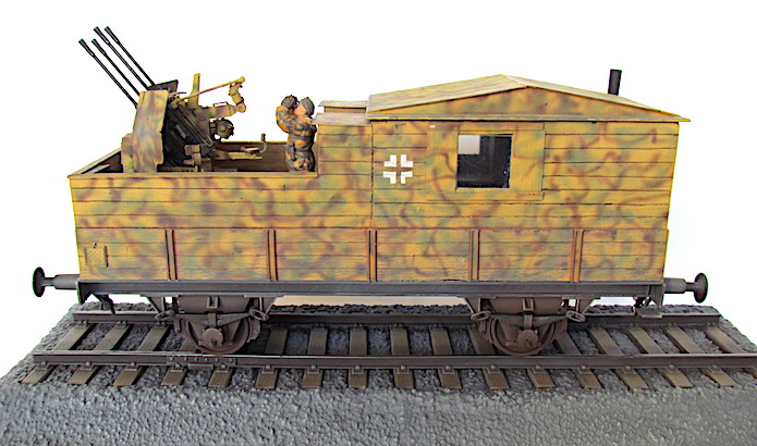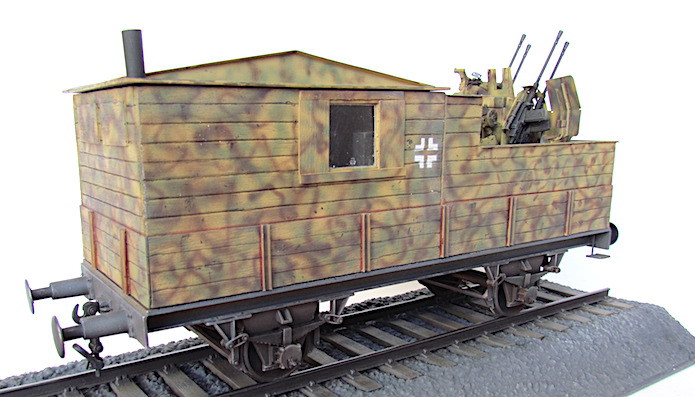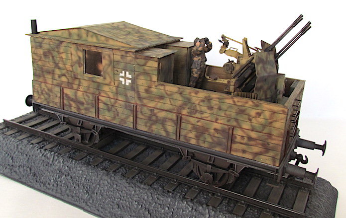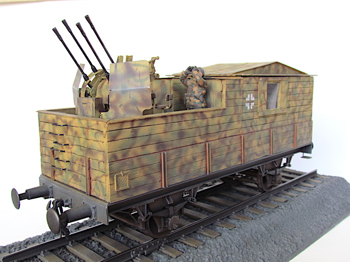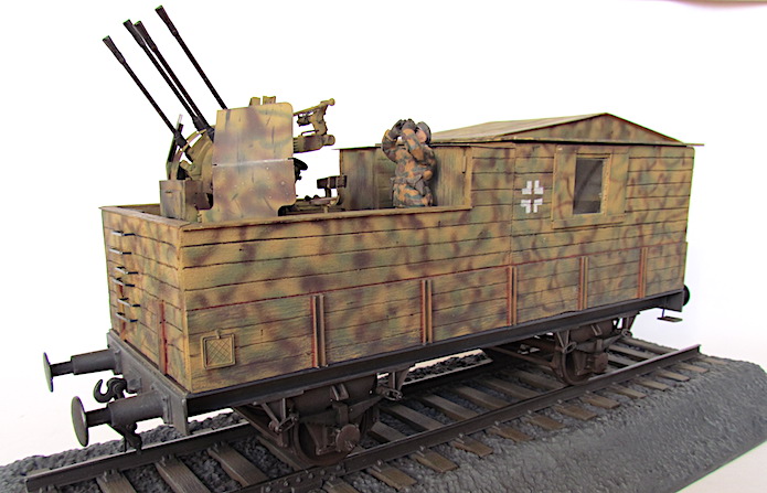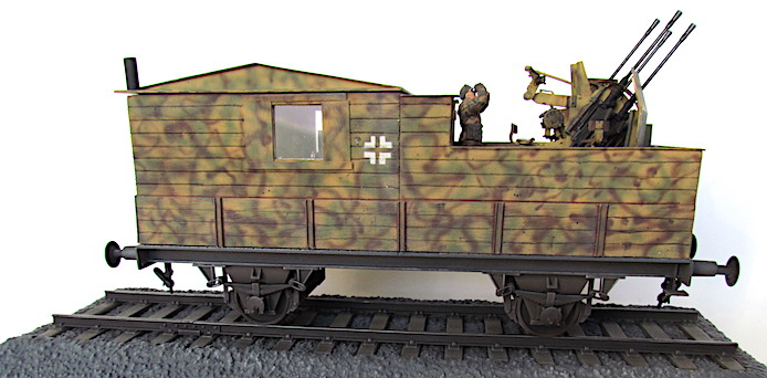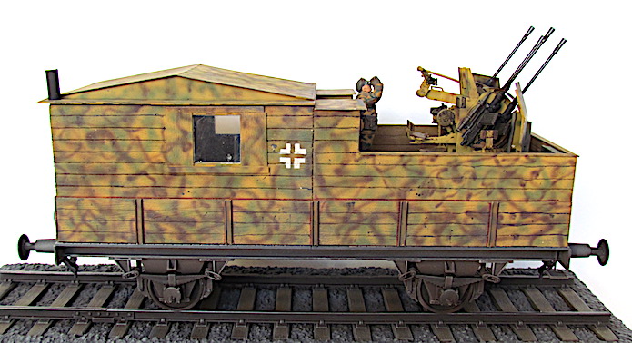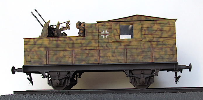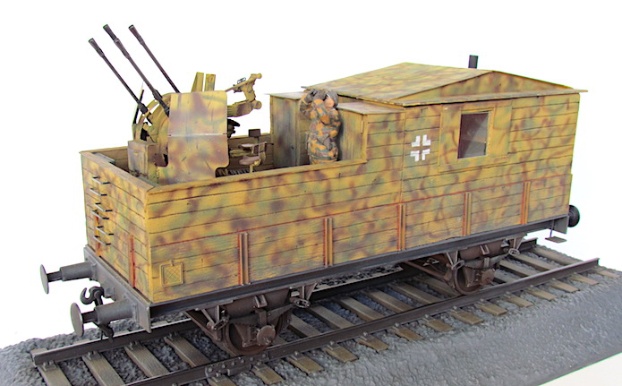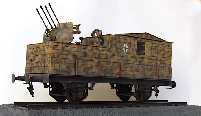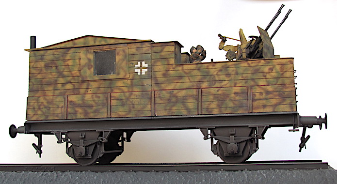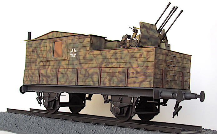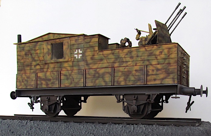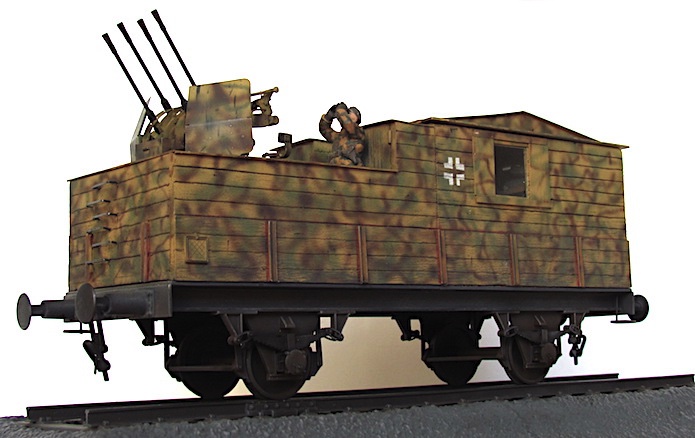Pour lutter contre cette menace, les convois ferroviaires se voient dotés d’une Flak des plus en plus renforcée. De nombreux wagons plats sont modifiés pour transporter une pièce de Flak légère de 20 ou 37 mm.