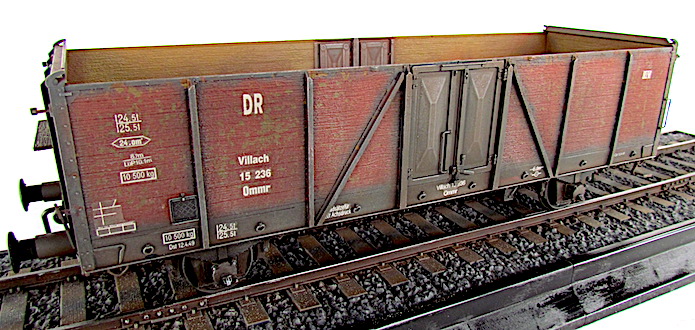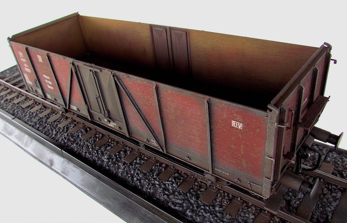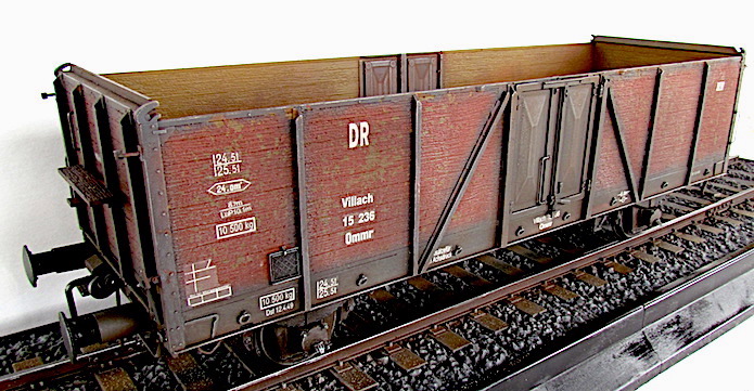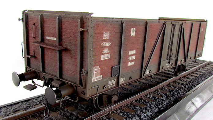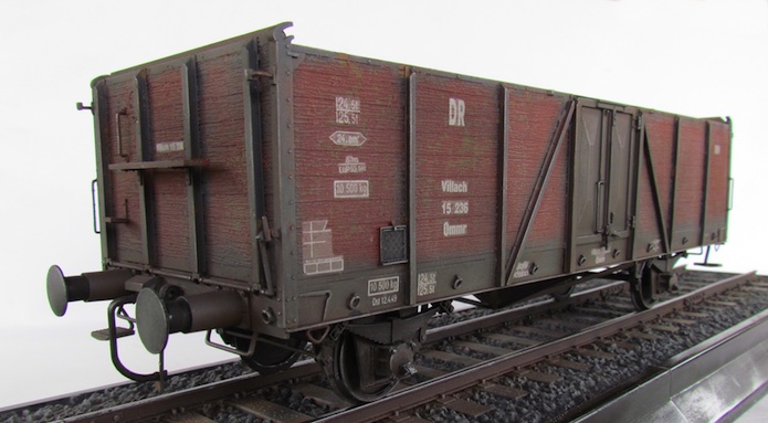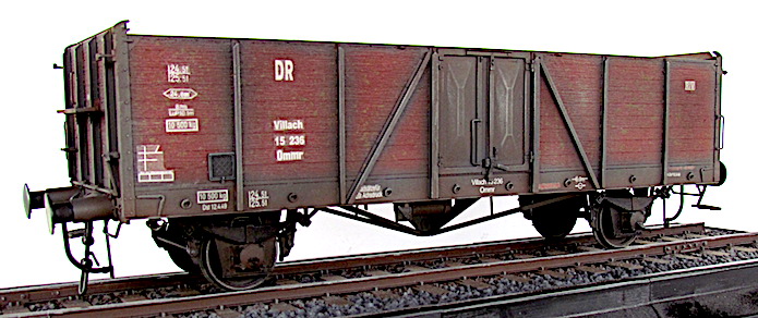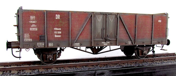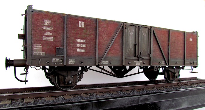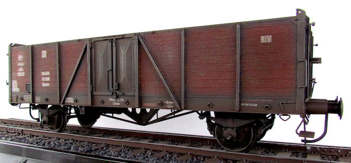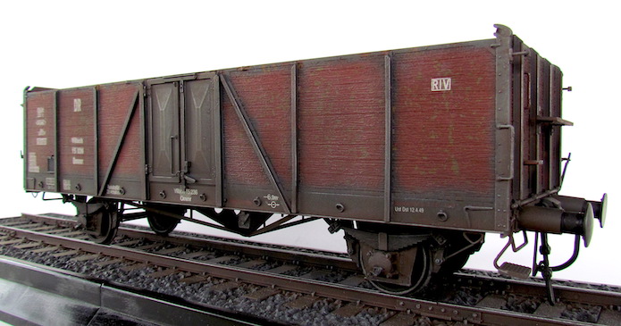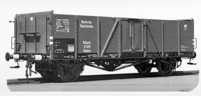 Le réseau ferroviaire fut un élément essentiel dans la conduite de la guerre pour l’Allemagne nazie. Par voies ferrées, transitait l’essentiel des armes, fournitures diverses, munitions et carburants pour le ravitaillement des unités engagées sur le front. Les matières premières nécessaires à l’effort de guerre transitaient aussi entre leurs lieux d’extraction vers les usines d’armement par voies ferrés. Il existait de nombreux types de wagon pour le transport de fret. Le wagon Omm en était un exemplaire. Il permettait le transport à ciel ouvert. Il fut conçu vers 1937-1938 dans le but de transporter tous types de marchandises pesant jusqu’à 24,5 tonnes. Son pont de chargement avait une longueur de 8,72 m. La construction de ce wagon conçu à partir de rien débuta en 1939 et prit fin en 1943. Rustique et rationnel d’emploi, il fut produit à 24 735 exemplaires déclinés en trois versions dont l’Ommr équipé de portes latérales et d’une façade avant et arrière basculante. Un certain nombre d’exemplaires survécut au conflit et fut utilisé durant de nombreuses années d’après guerre, preuve de leurs robustesse.