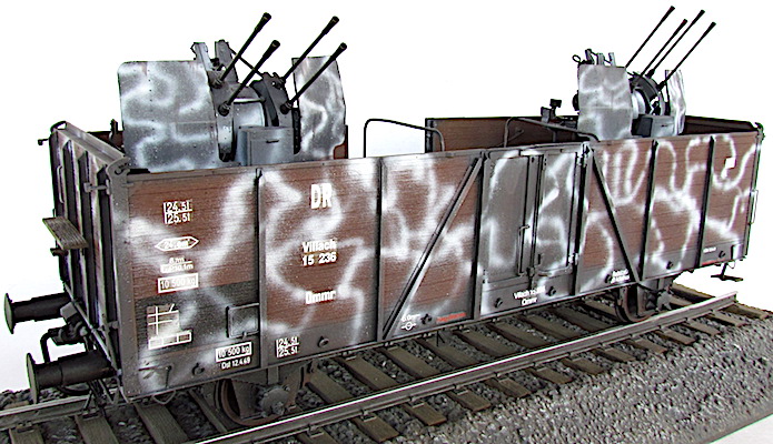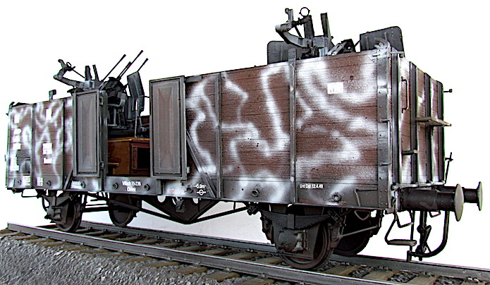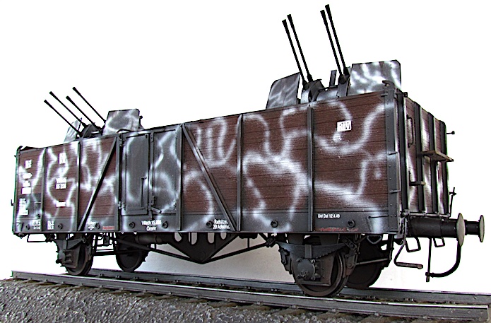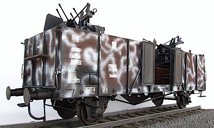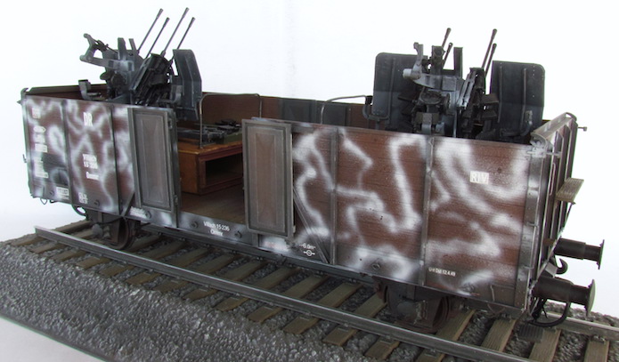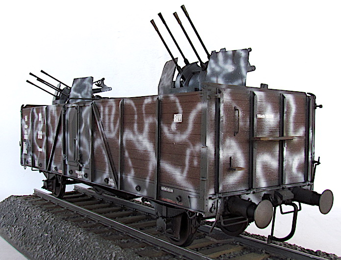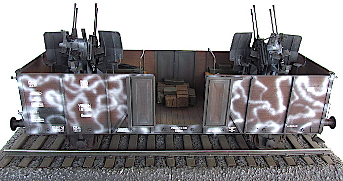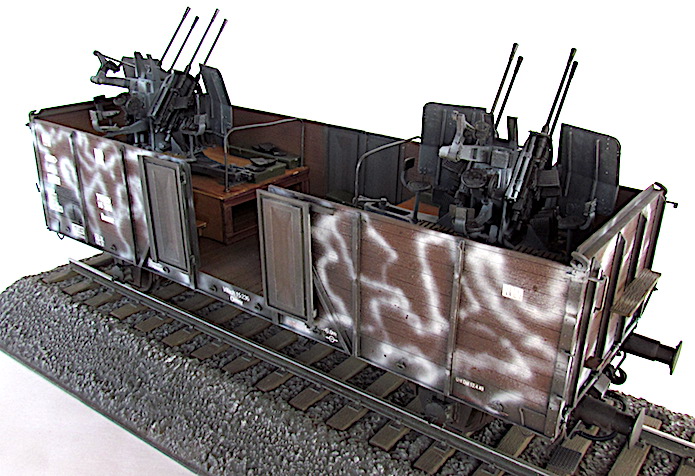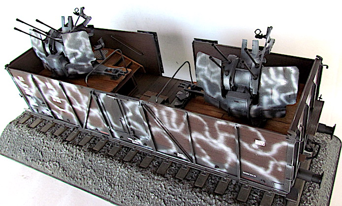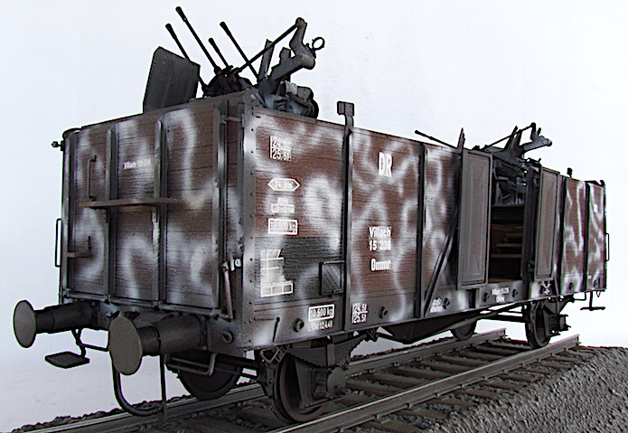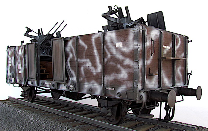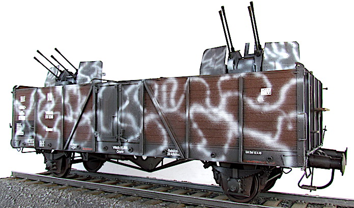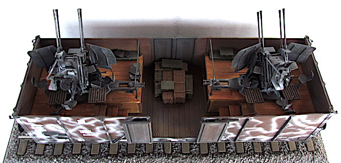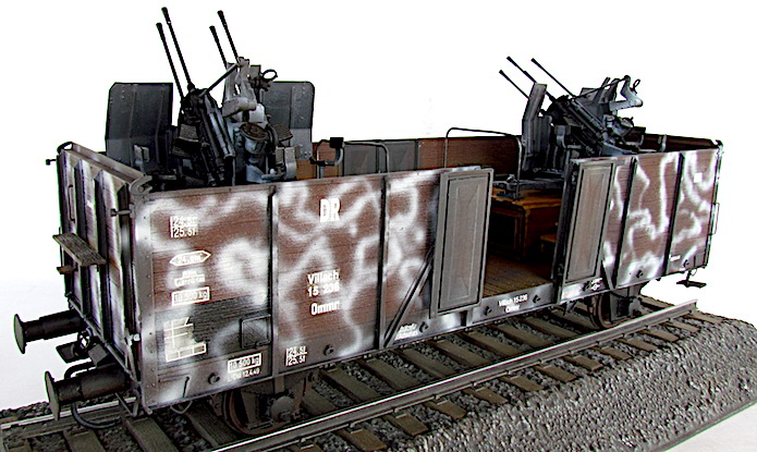 Wagon allemand Gondola Typ Ommr avec deux 20mm Flakvierling 38