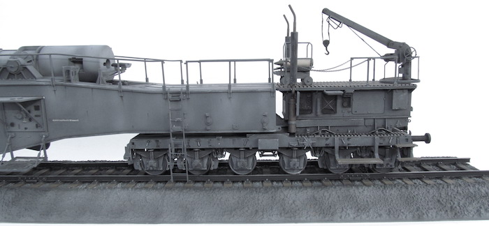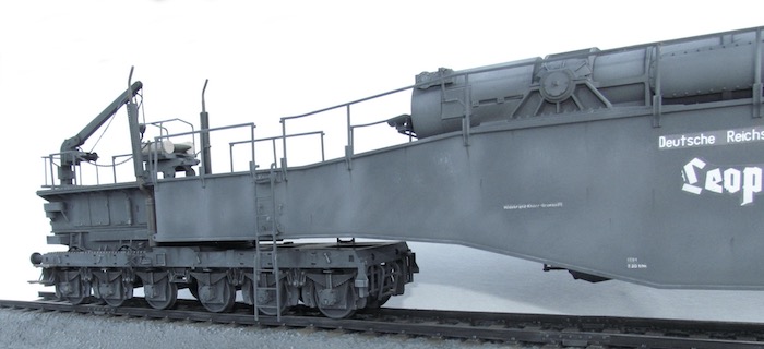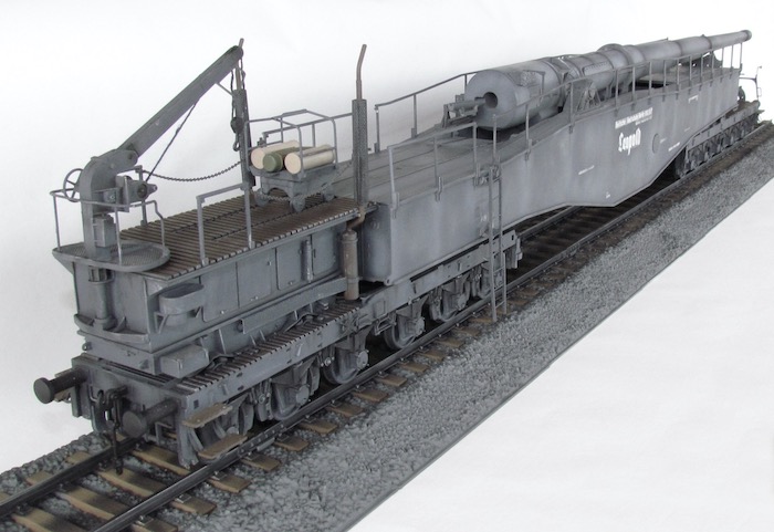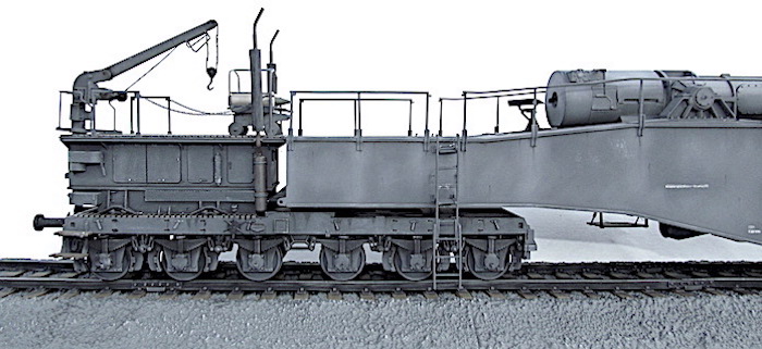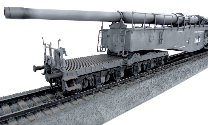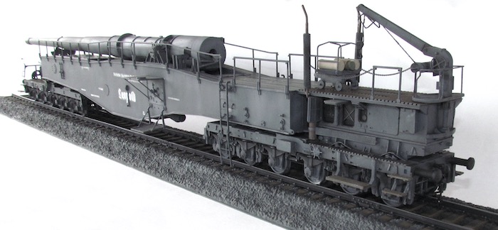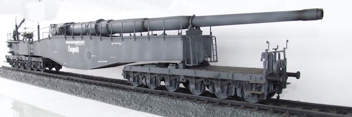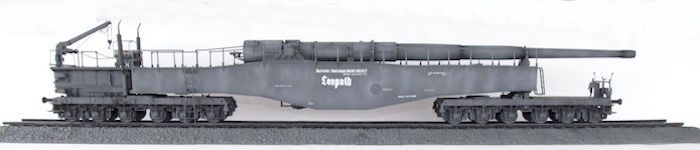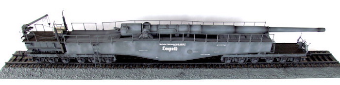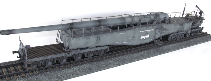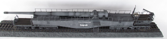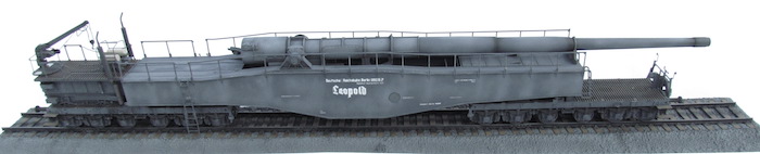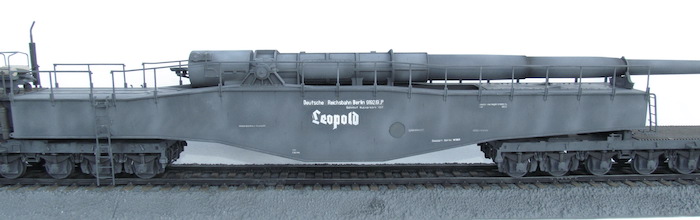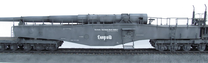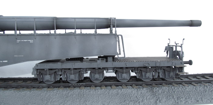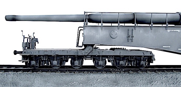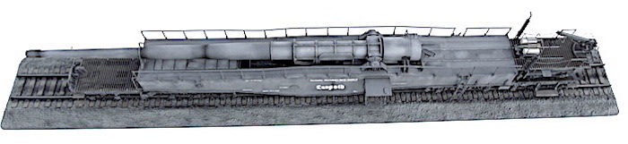 Cette pièce d'artillerie montée sur rails avait un calibre exact de 28,3 cm. Le tube était d'une longueur de 21,5 mètres sur un pivot ne permettant qu'une élévation verticale de l'arme. Ce pivot était monté sur un wagon à deux bogies de 12 roues. Ce montage ne permettait de faire varier l'axe horizontal du canon que de 2 degrés. Pour aligner la cible, en reculant ou en avançant le wagon, il fallait disposer d'une section de voie courbe ou d'une plage-forme tournante.