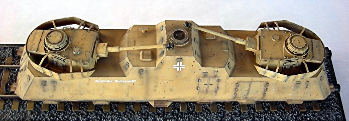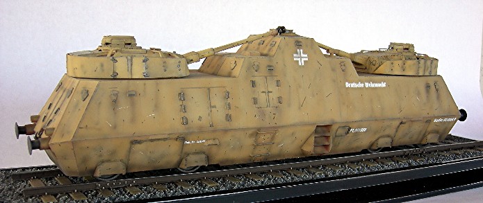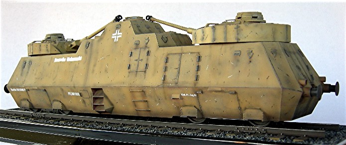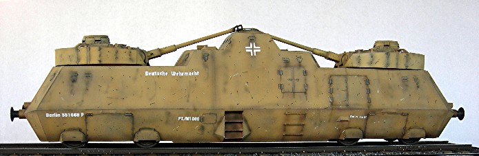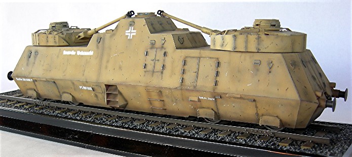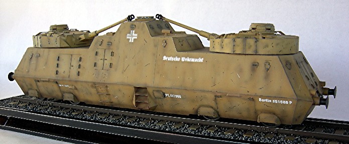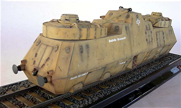 La PANZERJÄGER TRIEBWAGEN est une des plus lourdes draisines réalisées pour l’armée allemande. Elle est équipée de 2 tourelles de Pzkpfw IV H armée d’un canon de 75mm L/48. En décembre 1944, 5 engins sont en cours de montage, mais seulement 3 seront terminés, mais trop tard pour pouvoir être utilisées au combat. Leur identification allait du n° 51 à 55.