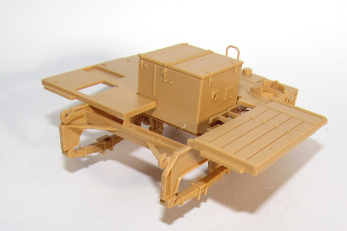 Mise en place des chenilles, du train de roulement avant et de la bêche d'ancrage