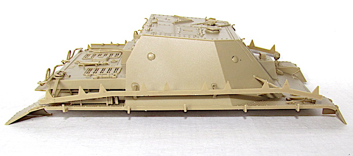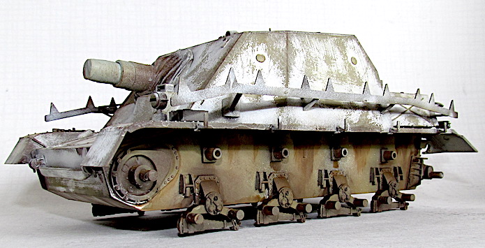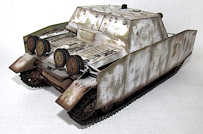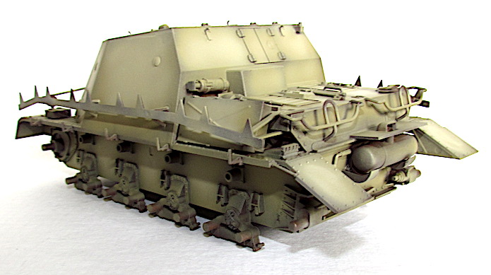 Mise en place du train de roulement, des plaques de blindage et début de la patine