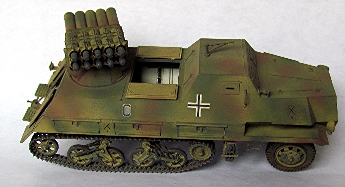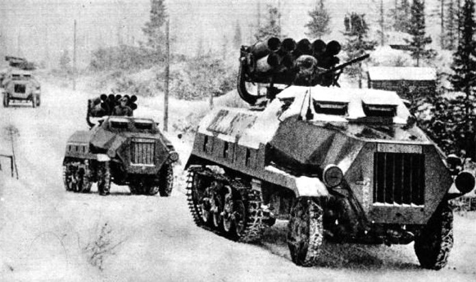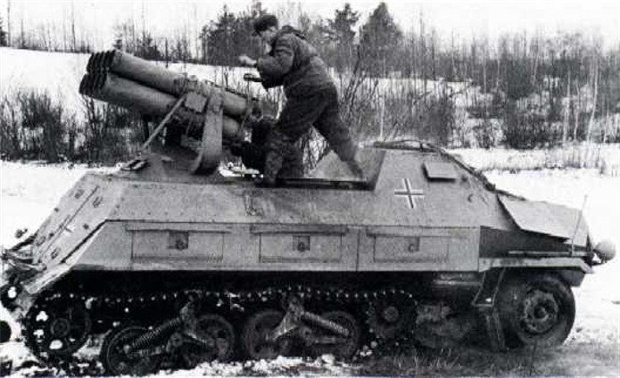 En 1942, les Allemands réalisèrent un lanceur monté sur semi-chenillé. C’était le Panzer-Werfer 42 de 15 cm, qui continua à tirer les roquettes Wurfgranate 41 de 15 cm et dont les tubes de lancement étaient disposés selon deux rangées horizontales de cinq au-dessus du semi-chenillé blindé Maultier Sd.Kfz 4/1. Ces engins fournissaient l’appui-feu au cours d’opérations de blindés. Ils pouvaient transporter jusqu’à dix roquettes prêtes au tir, chargées dans les tubes, et dix autres stockées à l’abri de la caisse du véhicules.