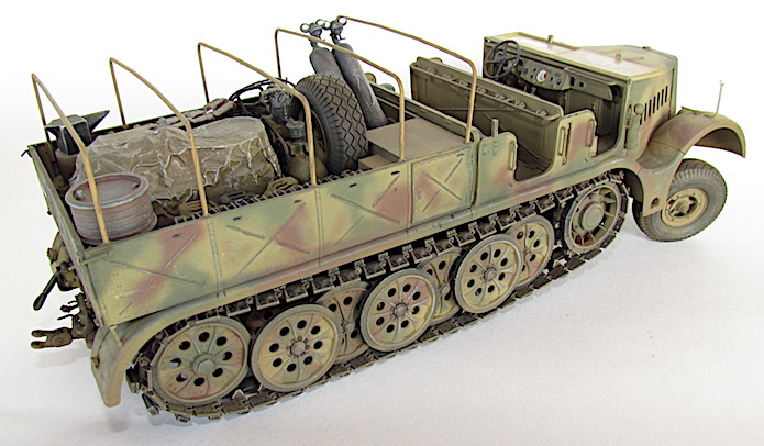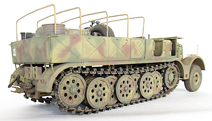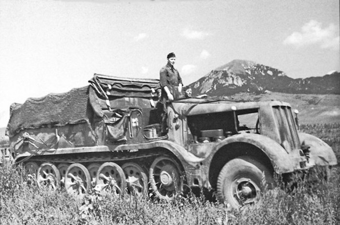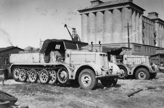 Le SdKfz 9 Schwerer Zugkraftwagen 18 t était de loin le plus gros des semi-chenillés de la Seconde Guerre mondiale. Ce véhicule doit ses origines à une demande faite au cours de 1936 en vue d’obtenir un véhicule lourd de dépannage pour la logistique des formations blindées et capable de tracter des chars mis hors de combat . Le contrat d’élaboration fut accordé à Famo Fahrzeugewerke und Motorwerke AG de Breslau qui devint d’office le seul producteur de l’engin. Le premier exemplaire apparut en 1936 : c’était me FM gr 1 et, plus tard, deux autres modèles sortirent d’usine, les FM gr 2 et FM gr 3 dotés de moteurs plus importants et plus puissants. A la fin, ces usines produisirent des versions de traçage et de dépannage. La version tracteur constituait le SdKfz de base, utilisé pour tracter les pièces d’artillerie lourdes de l’armée allemande ou des matériels du génie tels des pontons (une unité de trcteurs véhiculait des éléments de pont dans des remorques spéciales; ce type d’unité comptait quinze hommes). Parmi les pièces d’artillerie tractées par le SdKfz 9 citons le K3 de 240 mm (si énorme qu’il fallait le tracter en cinq cargaisons), le K38 de 210 mm de Krupp et les divers canons et howitzers lourds de chez Skoda.