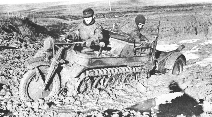 Au moment où le Kettenrad entra en service, la destination qu’on lui avait réservée initialement n’avait quasi plus de raison d’être après la saignée subie par les unités parachutistes de la Luftwaffe en Crète. Après cette aventure militaire, les troupes aéroportées allemandes combattirent au sol. La nécessité d’utiliser des tracteurs d’artillerie légers ne se faisait plus sentir. De ce fait, le Kettenrad devint un véhicule d’appui logistique pour les troupes qui opéraient dans des zones où d’autres véhicules ne pouvaient se mouvoir qu’avec difficulté, le petit Kettenrad se révélait capable de mener à bien ce type de mission dans des terrains autrement impraticables, boueux ou sablonneux. Bien sûr, les Kettenräder ne pouvaient pas transporter grand-chose, et leur capacité de traction limitée à 450kg. C’était là un désavantage sérieux, compensé toutefois par le nombre réduit de Kettenräder construits. Les rares disponibles étaient d’office mis en réserve pour des missions particulièrement difficiles.