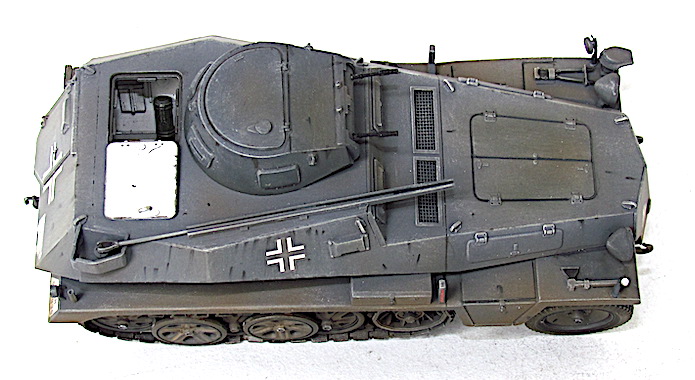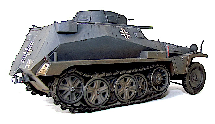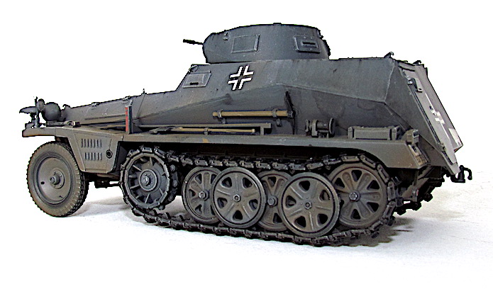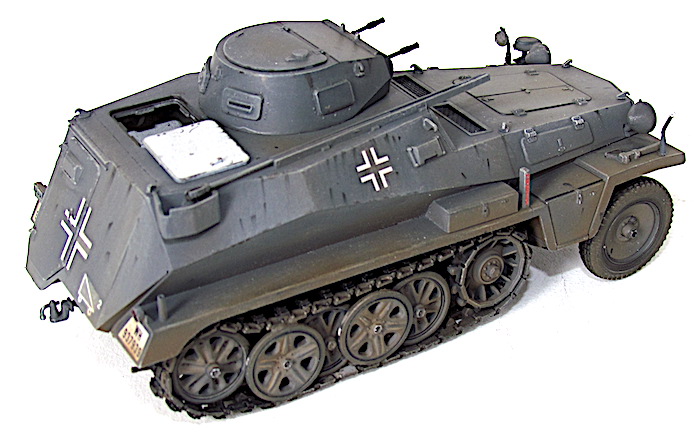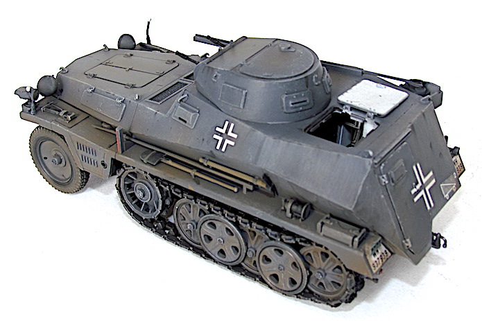 Ce mouton à cinq pattes est une conversion de terrain. La trappe d’observation d’artillerie est occultée par la mise en place d’une tourelle de Panzer I.