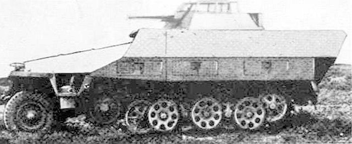 Le 28 décembre 1944, sur la base des informations fournies par Hauptmann Petzer du WaPrüf 6, le lieutenant Goller ajouta au manuel secret D97/1 un nouveau type de véhicule, qui était un mittlerer Schützenpanzerwagen (2 cm Hängelafette 38) (Sd.Kfz. 251/23). Le type était également connu sous la désignation de code Gerät-Nr.923.