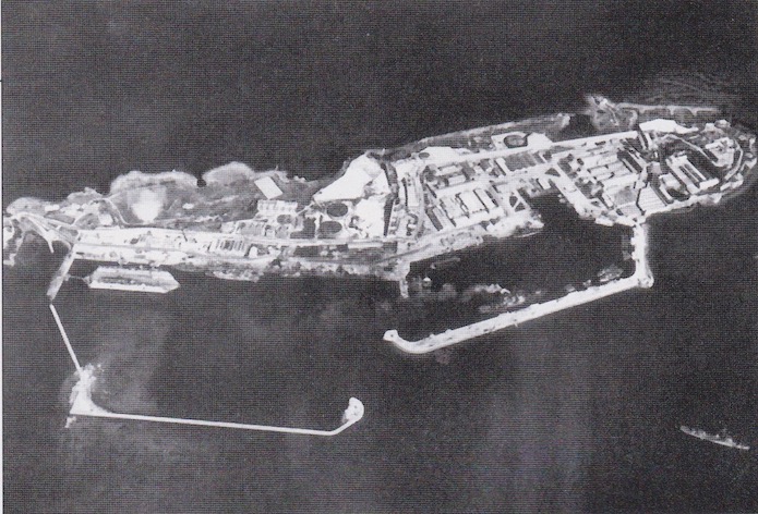 Vue aérienne de l’arsenal d’Ireland Island prise le 9 avril 1944.