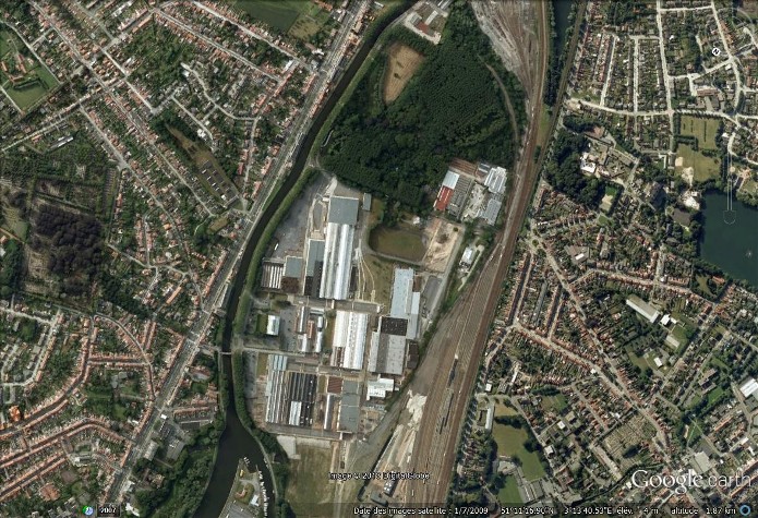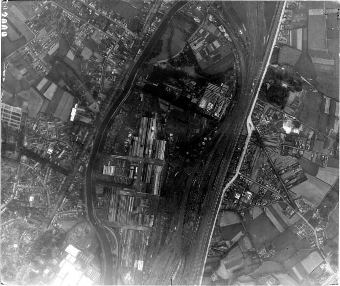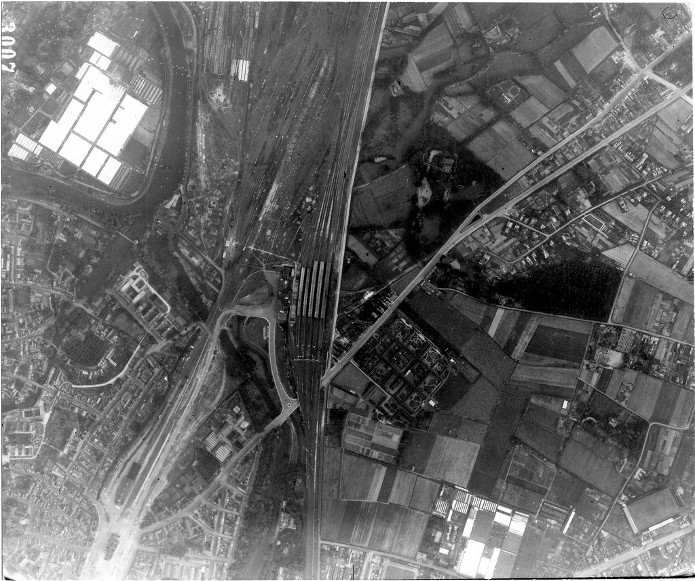 Photographies aériennes verticales de la gare centrale de Bruges.