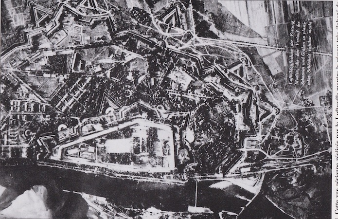 Cette photographie aérienne prise par l’aviation allemande montre le réseau très élaboré des fortifications. Cette photographie dont la date n’est pas précisée semble avoir été prise peu de temps avant le déclanchement de l’invasion de la Pologne.