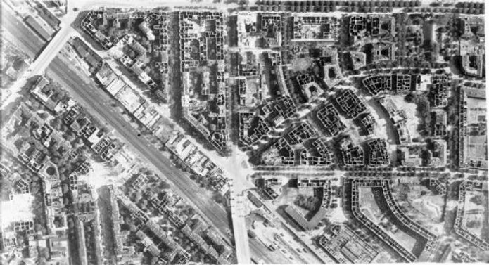 Le secteur de Steglitz, près de la gare ferroviaire de Friedenau a été sérieusement endommagé par les bombardements massifs menés par les appareils du Bomber Command dans la nuit du 23/24 août, du 31 aout/1 septembre et du 3/4 septembre 1943. De nombreux immeubles ont été détruits par des incendies.