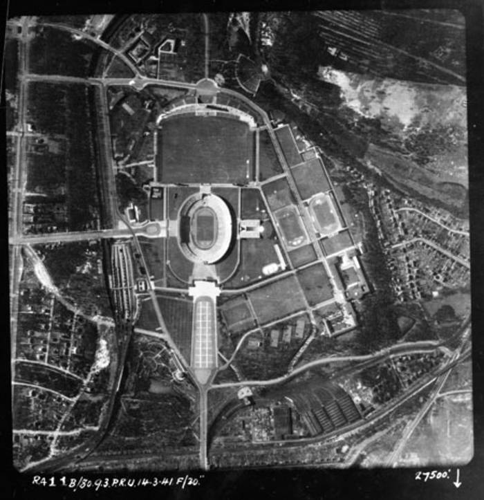 L’Olympic stadium de Berlin photographié lors d’une mission de reconnaissance aérienne, le 14 mars 1941, par la Royal Air Force
