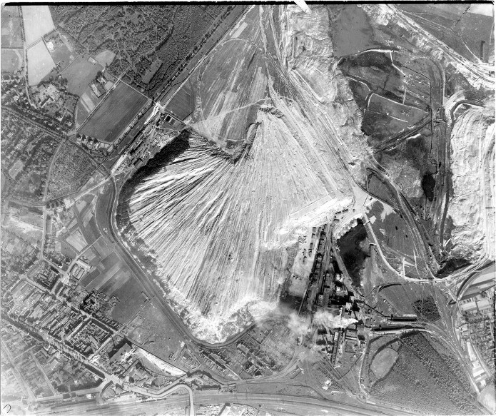 Document : photographie aérienne verticale du champ d’extraction de pétrole de schiste argileux près de Bitterfeld, Allemagne