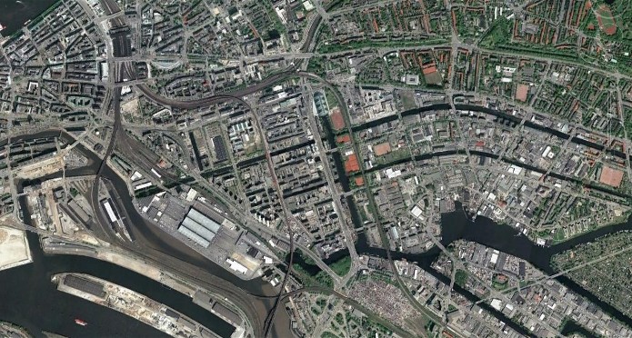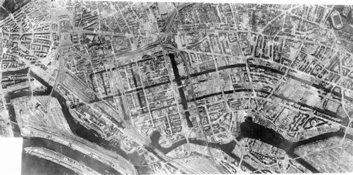 Document : assemblage de photographies aériennes de la ville d’Hambourg.