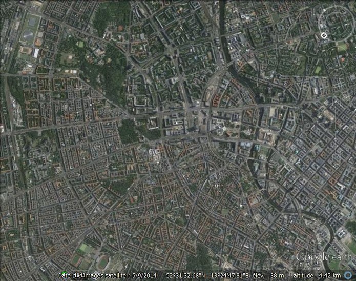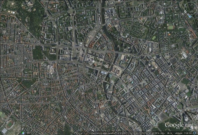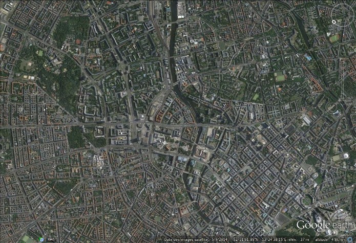 Documents : Une série de photographies aériennes verticales prise au-dessus de Berlin Mehringplatz.