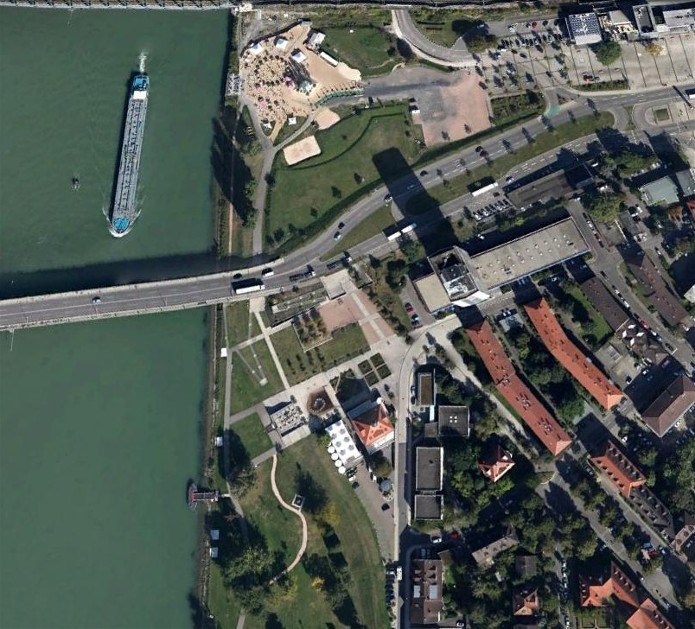 Document : Photographie aérienne verticale du pont du Rhin coté allemand à Kehl.