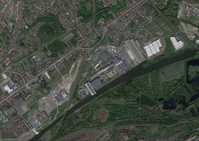 Document : photographie aérienne verticale de la gare de Valenciennes.