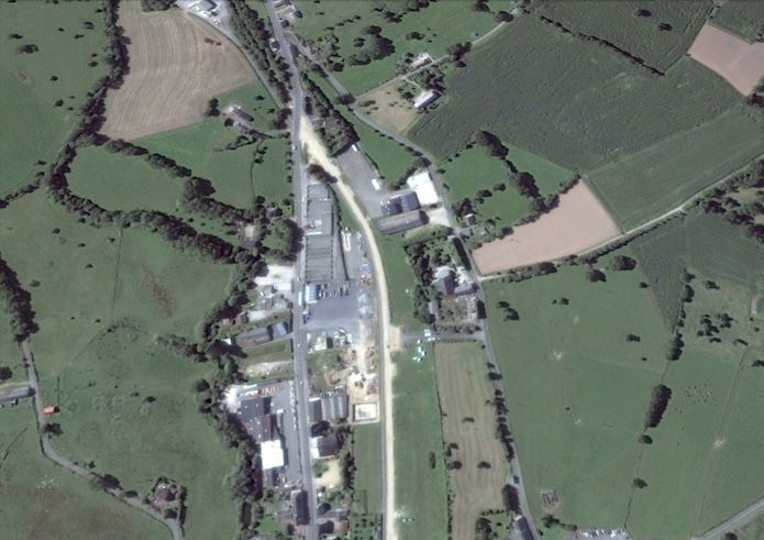 Document : photographie aérienne verticale de la gare de Domfront. Été 1944