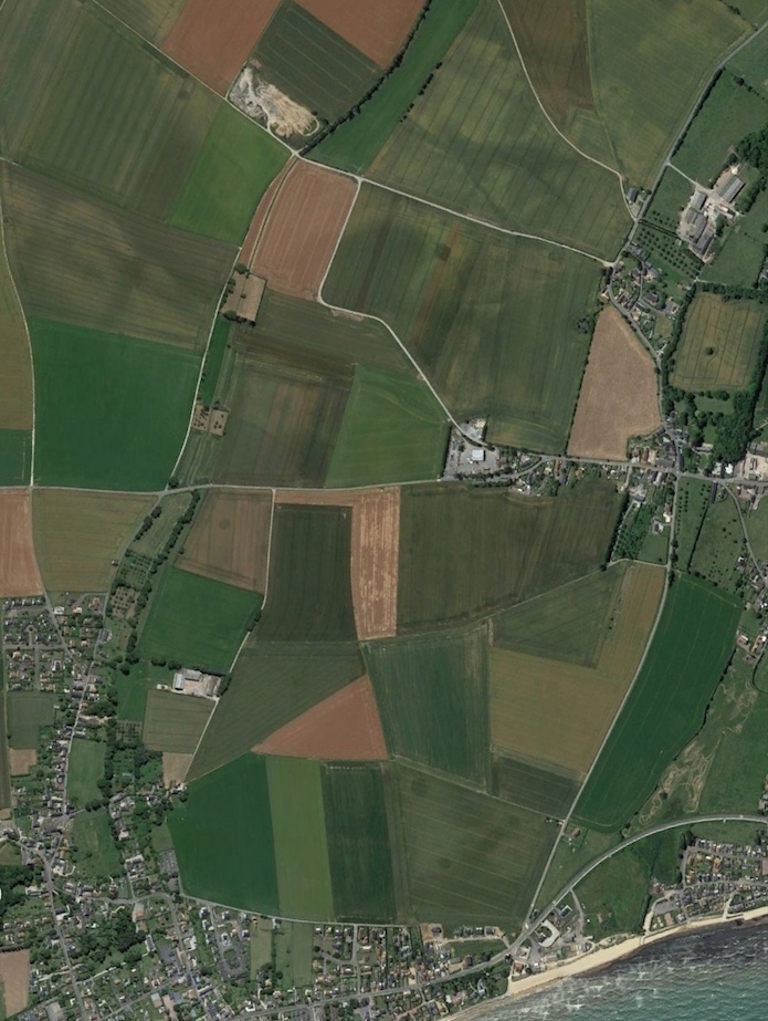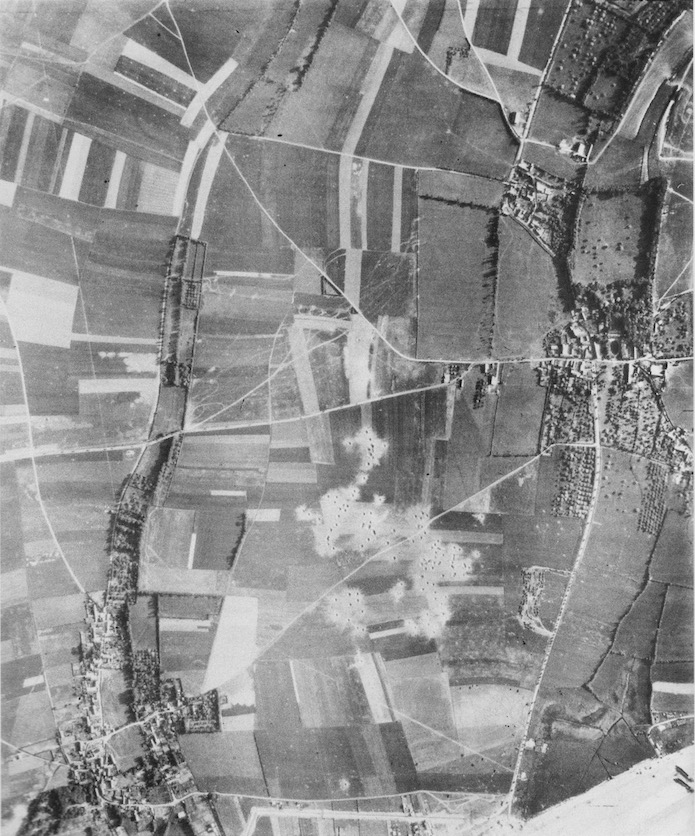 Document : photographie aérienne verticale prise le 7juin 1944 par un appareil de la Royal Air Force.