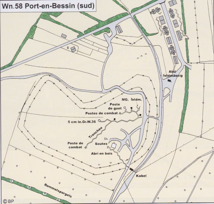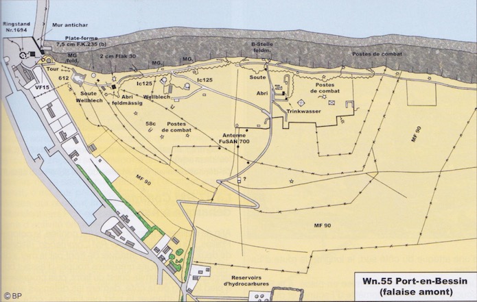 L’intérêt stratégique du port n’a pas échappé aux Allemands. La rade est protégée par cinq WN numérotés de 55 à 58. L’organisation Todt fortifie lourdement les promontoires des falaises qui entourent le port. Les zones de tir couvrent toutes les approches du port depuis la mer ou des falaises qui dominent la ville.