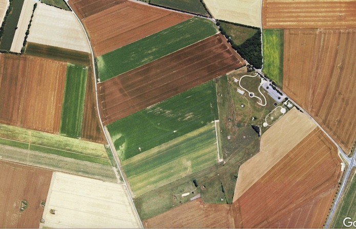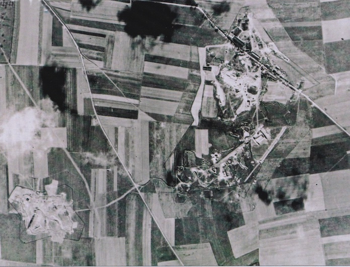 Document : vue aérienne verticale de la station radar prise peu avant le 6 juin 1944.