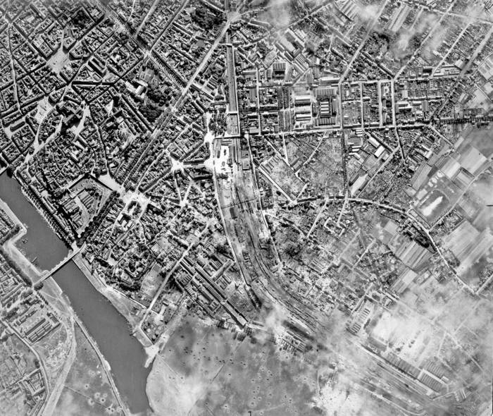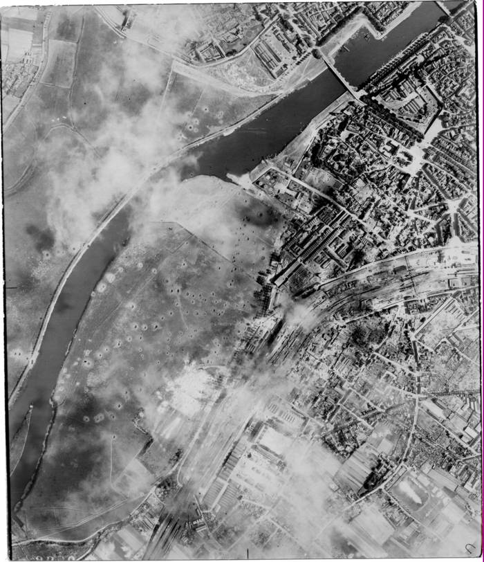Mission1841 du 7ème PRG. Les cibles étaient les ponts sur la Loire de Nantes à Tours. Photos prises d’unSpitire MK XI 841 piloté par lieutenant John S Blyth (USAAF).