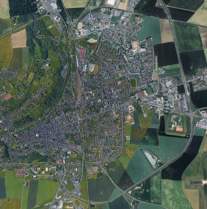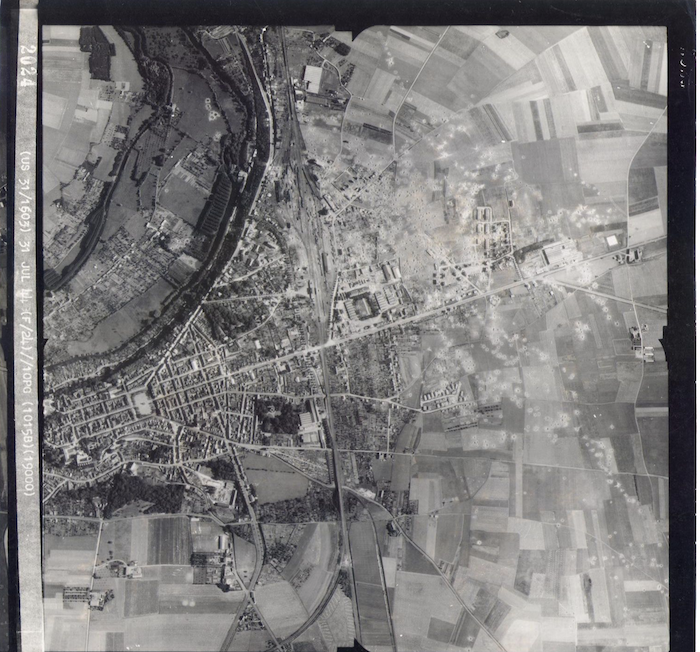 Document : Photographie aérienne verticale du quartier de la gare de Châteaudun prise le 31 juillet 1944.