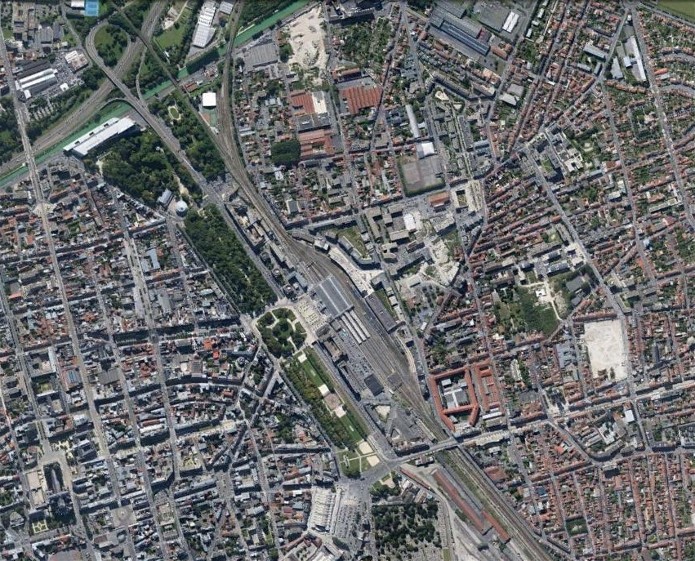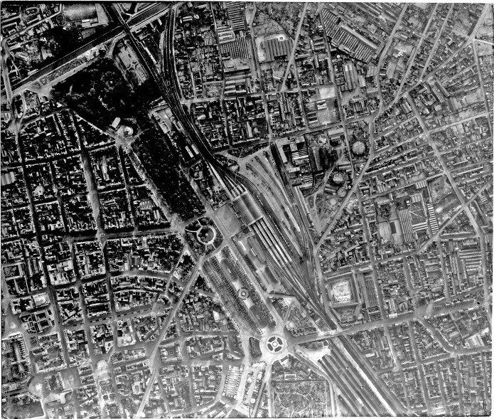 Photographie aérienne verticale du centre de Reims, le 1 mai 1944.