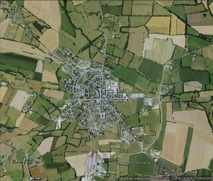 Document : photographie aérienne verticale du centre du bourg d’Aunay sur Odon