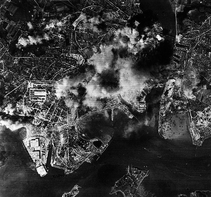 Document : photographie aérienne verticale de Lorient lors du raid du 6 mars 1943.