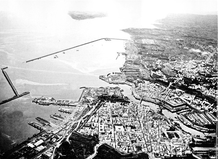 Cette vue aérienne du port et d’une partie de la ville de Brest a été prise par un appareil allemand en juin 1940.