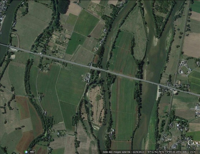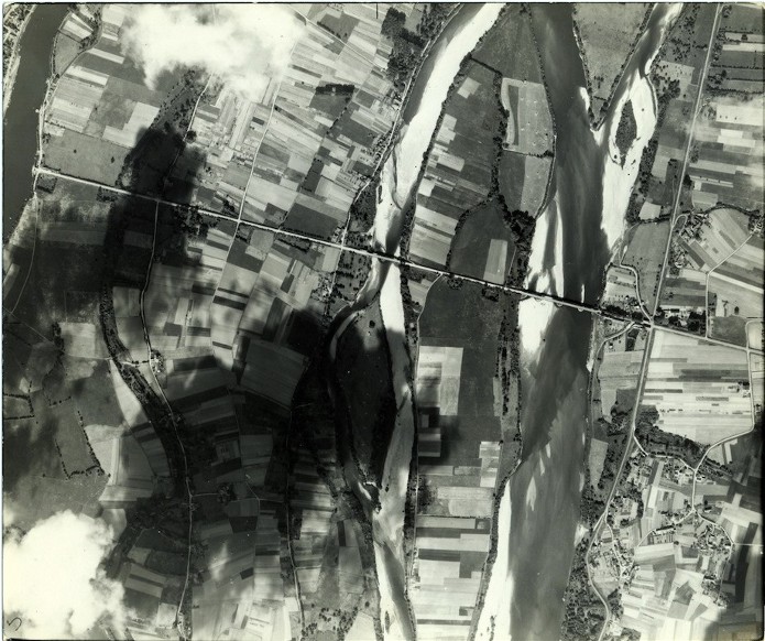 Document : Photographie aérienne verticale prise lors d’un bombardement des ponts enjambant la Loire.