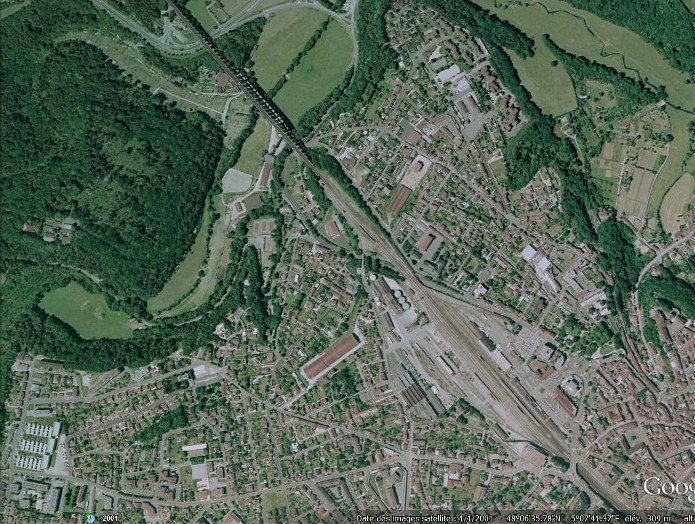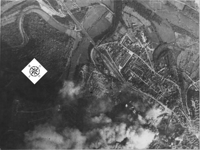 Document : Photographie aérienne verticale prise lors du bombardement de la gare de Chaumont.