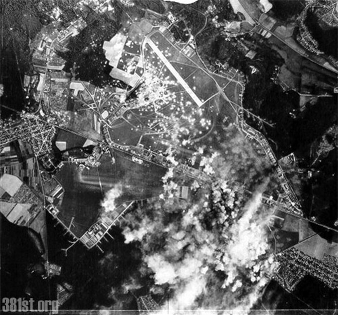 Cette photo a été prise le 24 août 1943 lors d'un bombardement effectué par le 381st Groupe de Bombardement de la 8th US Air Force.