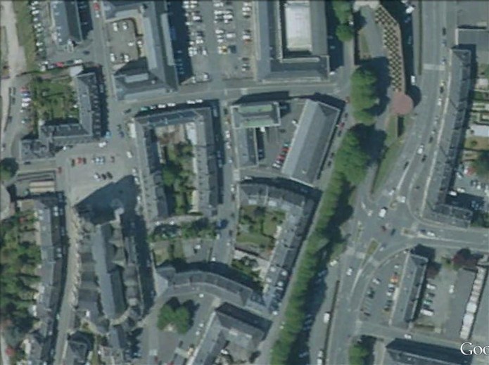 Document : photographie aérienne verticale du centre-ville de Saint-Lô.