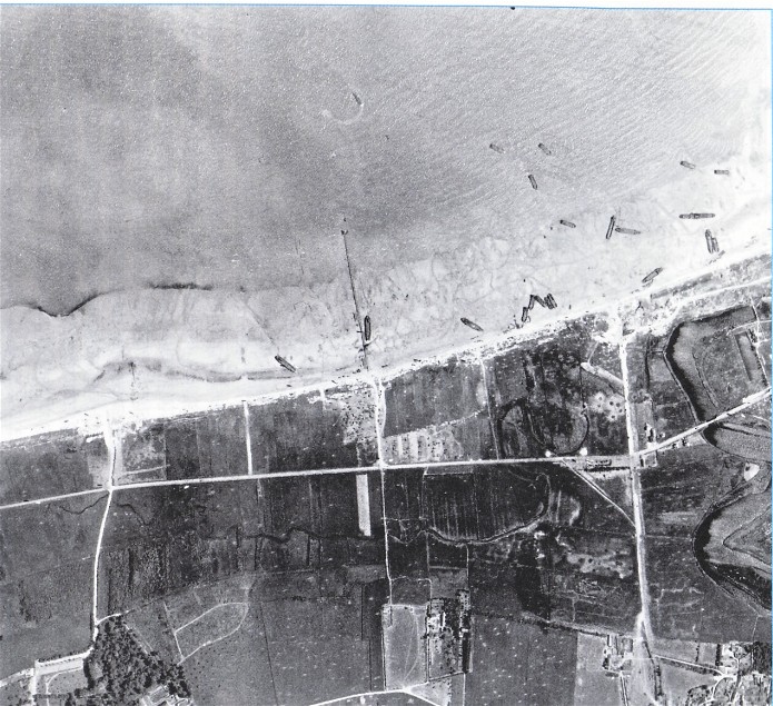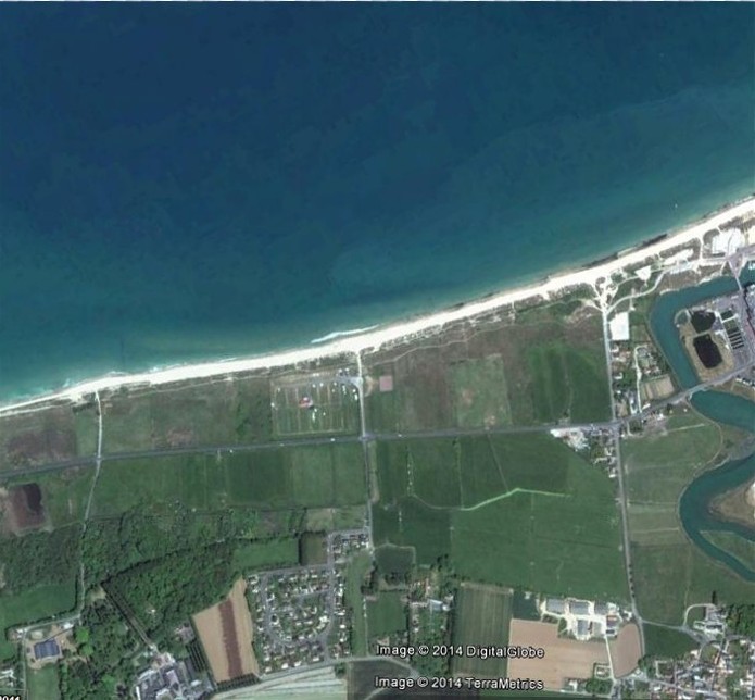 Document : photographie aérienne verticale de la zone est du port de Courseulles sur Mer.Secteur Mike-Green