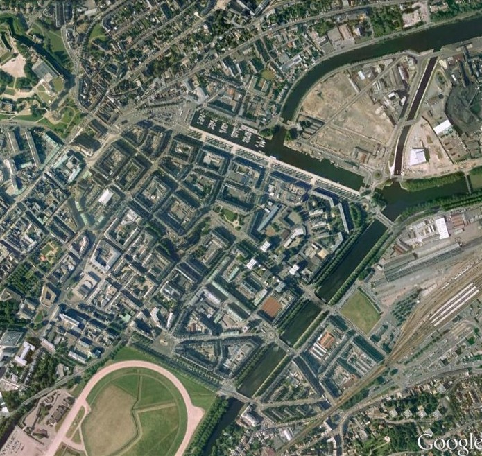 Document : Photographie aérienne verticale du centre-ville de Caen. Eté 1944