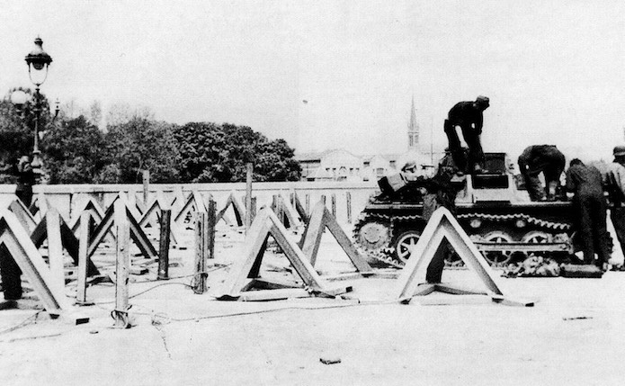 Cette destruction interdit le passage des engins de la 10. Pz.D. De nombreux obstacles antichars ont été positionné aux abords du pont. L’équipage de ce Panzer I Ausf.A procède à des opérations de maintenance.