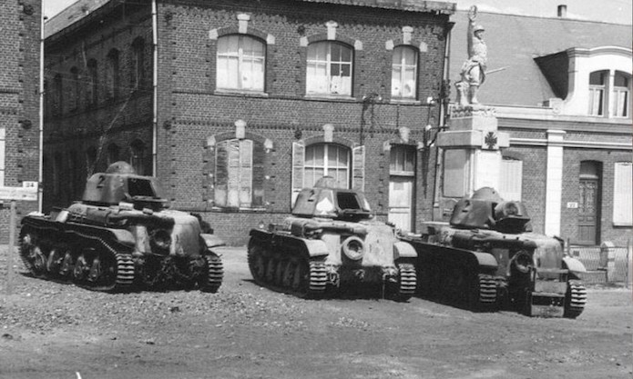 Ces trois chars R 35 qui pourraient appartenir à la 2e Cie du 6e BCC ont été abandonné sur la place de Seboncourt. L’unité a mené un combat retardateur sur le canal de l’Oise le 18 juin 1940.