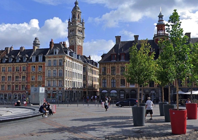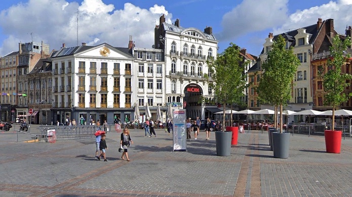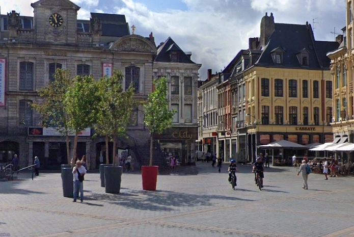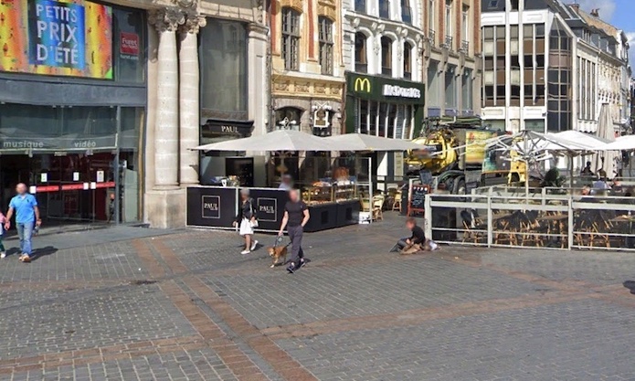 A 9h30, le 1er juin, les officiers allemands rendent les honneurs aux soldats français vaincus. Le général Wegner est installé juste devant la façade d’un restaurant. Celui-ci est devenu la librairie du Furet du Nord.