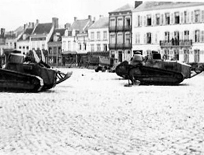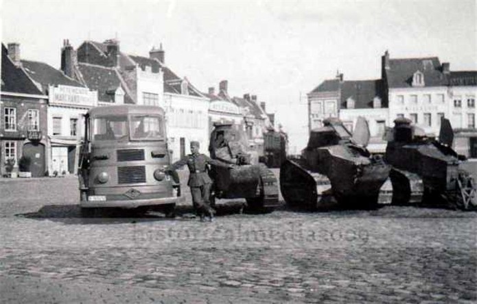 Le 4 juin 1940, le drame est consommé, l’évacuation par mer est terminée. Les deux armées ont abandonné des quantités phénoménales de matériels. La place de l’hôtel de ville d’Hazebrouck devient un centre de regroupement pour ces dizaines de FT17 capturés.