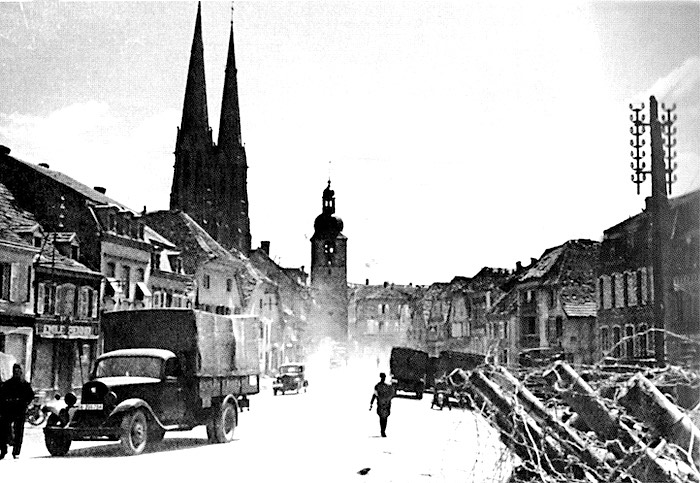 La rue principale de Sarralbe semble épargnée mais la ville a payé un lourd tribu à la bataille.