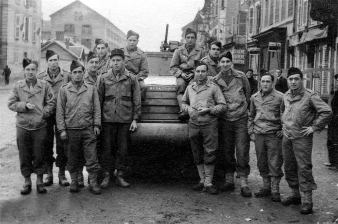 9 Char TD M-10 « Jean-Bart » .Ce blindé immatriculé "420098" sera détruit le 15 avril 1945. Il appartenait au 3e peloton de combat du 3e escadron du RBFM photo : Jc Ascione