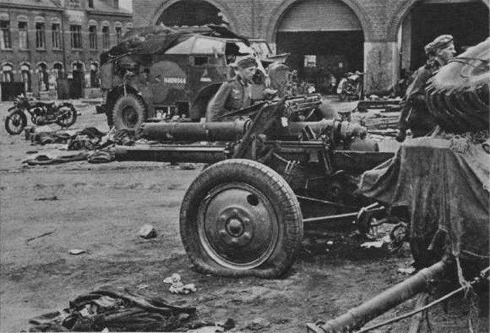 De nombreux tracteurs (Morris C8 4X4) et pièces d’artillerie (Ordnance QF 18 Pounder) ont été abandonnés