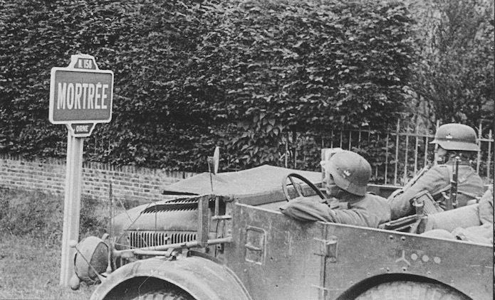 Ces deux photographies prise le 1§ juin 1940 montrent des véhicules de la 7.Panzer-Division entrant dans Mortrée en direction de Flers.