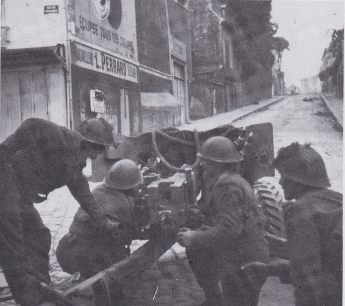 9 juillet 1944 : Le quartier du Vaugueux est aux mains du 1st K.O.S.B de la 3e D.I. britannique. Un canon antichar de 6 livres est mis en batterie pour couvrir le débouché de la rue des Chanoines.